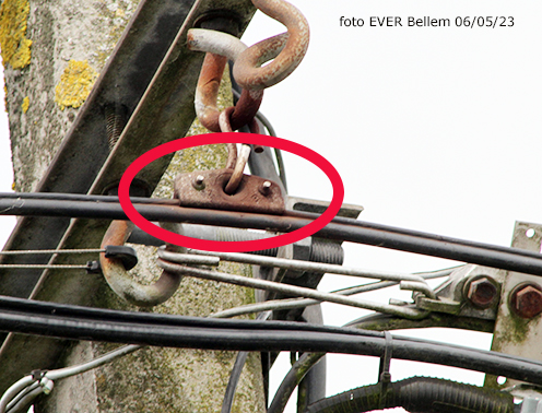 Coverfoto : Ophanging - wieg - van distributiekabel die al dertig jaar geleden wegens veroorzaken van kabelbreuken had moeten vervangen zjn, maar is goed genoeg voor Aalter en Bellem.