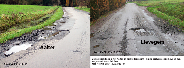 Na de meldingen in oktober 2022 leek het er op dat het bestuur in Lievegem wat inschikkelijker zou zijn dan Aalter, Lievegem begon als eerste om de putten in hun gedeelte van de straat te vullen, Aalter volgde enkele dagen later, maar ondertussen is het duidelijk dat Lievegem geen sikkepit beter is dan Aalter, het volk moet volgend jaar in het stemhokje met deze tsjeven afrekenen.